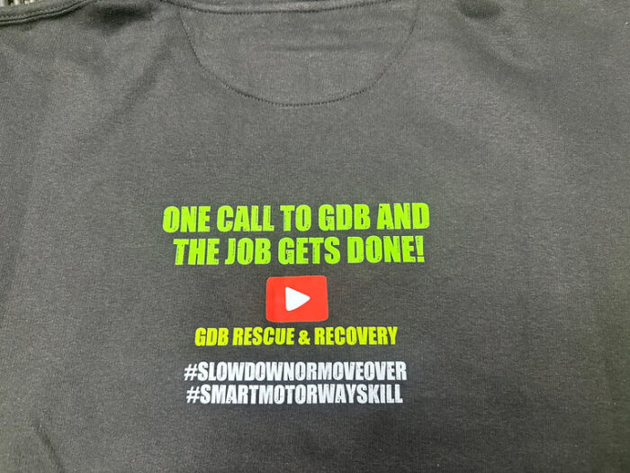 With the popular slogan “ONE CALL TO GDB AND THE JOB GETS DONE” Printed on the back.